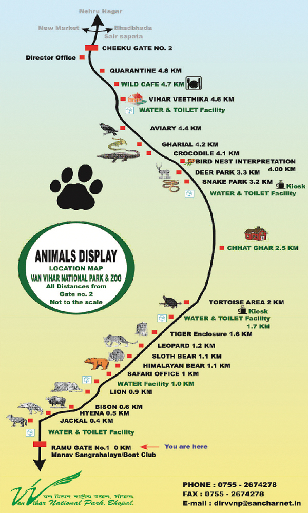 • पता - वन विहार राष्ट्रीय उद्यान, भदभदा रोड सैर सपाटा के पास भोपाल - 462003